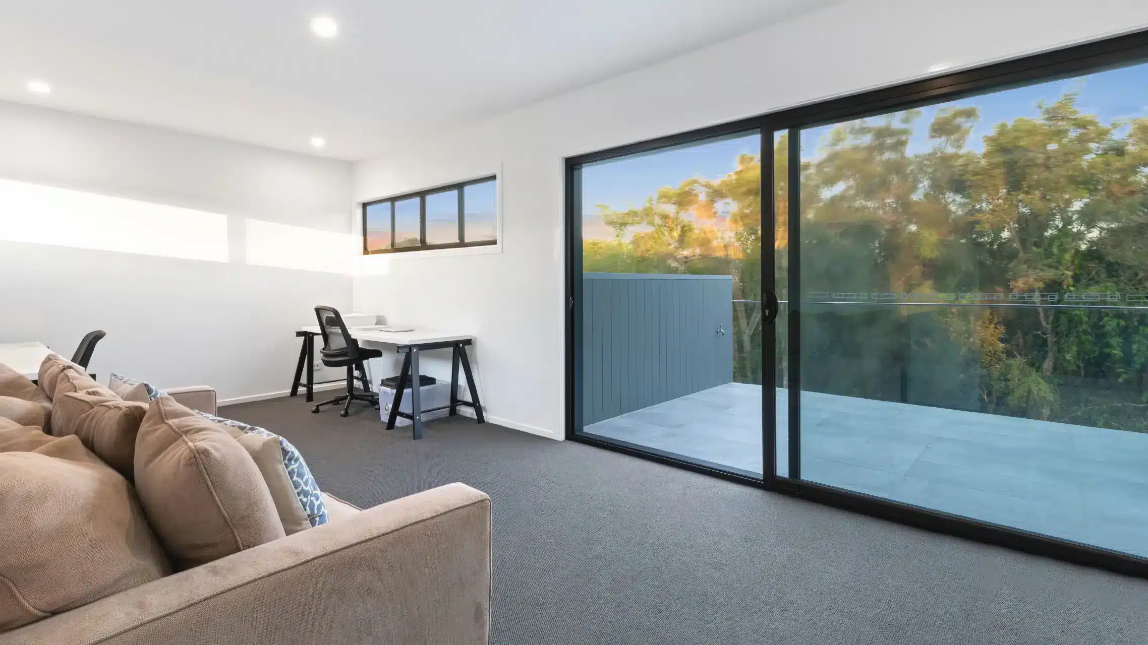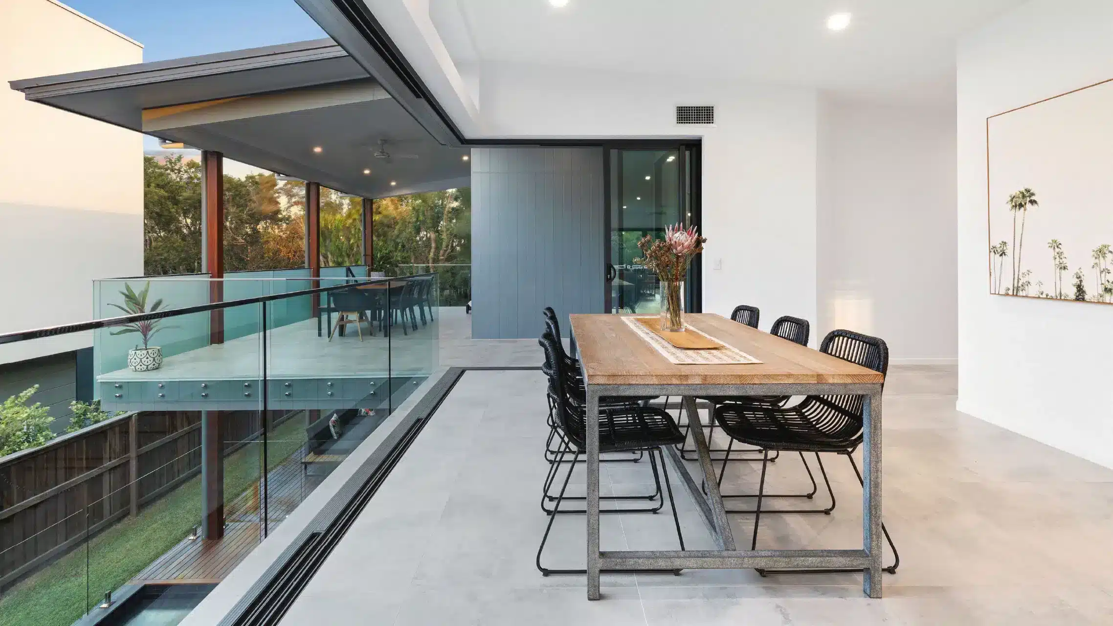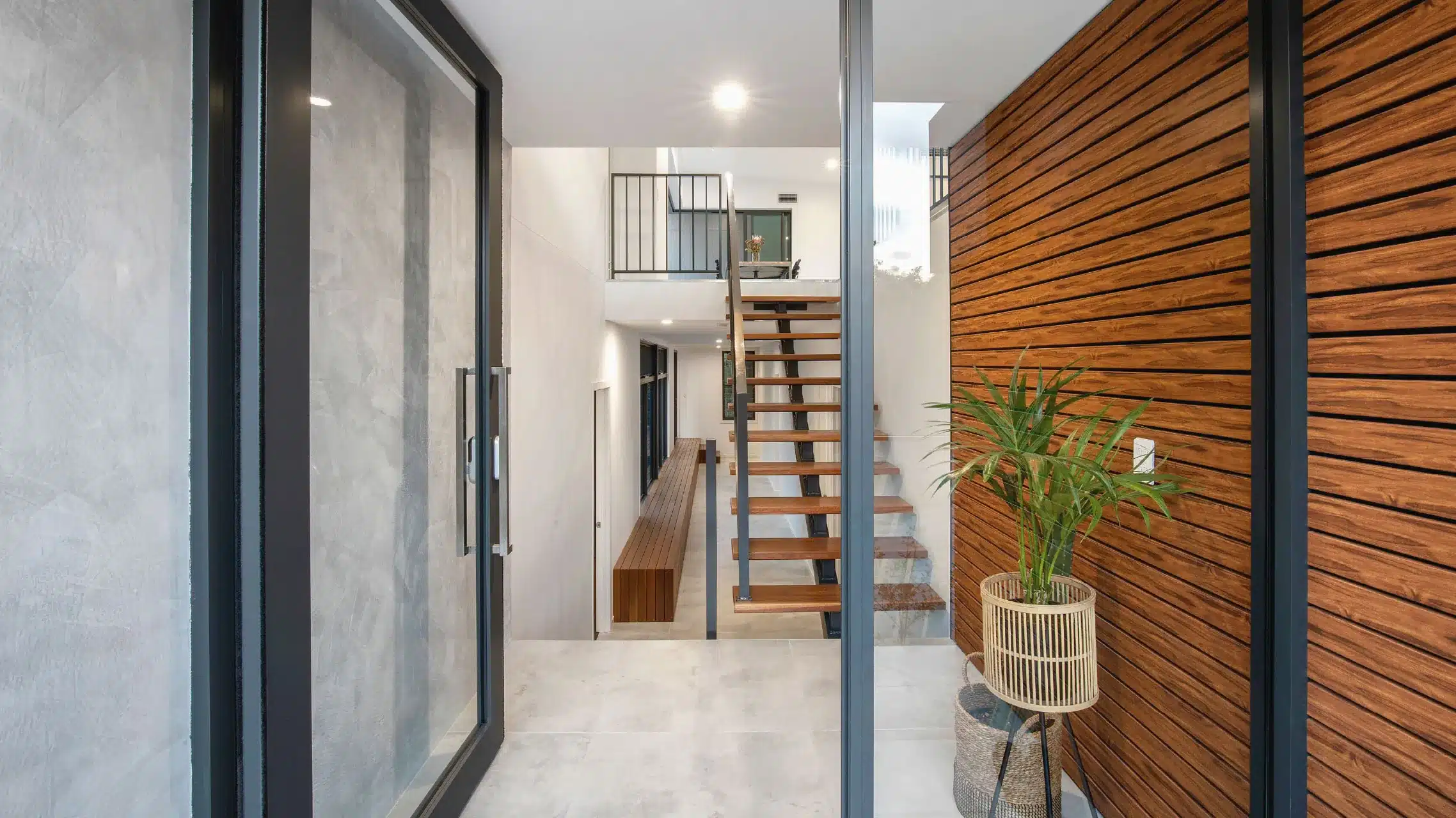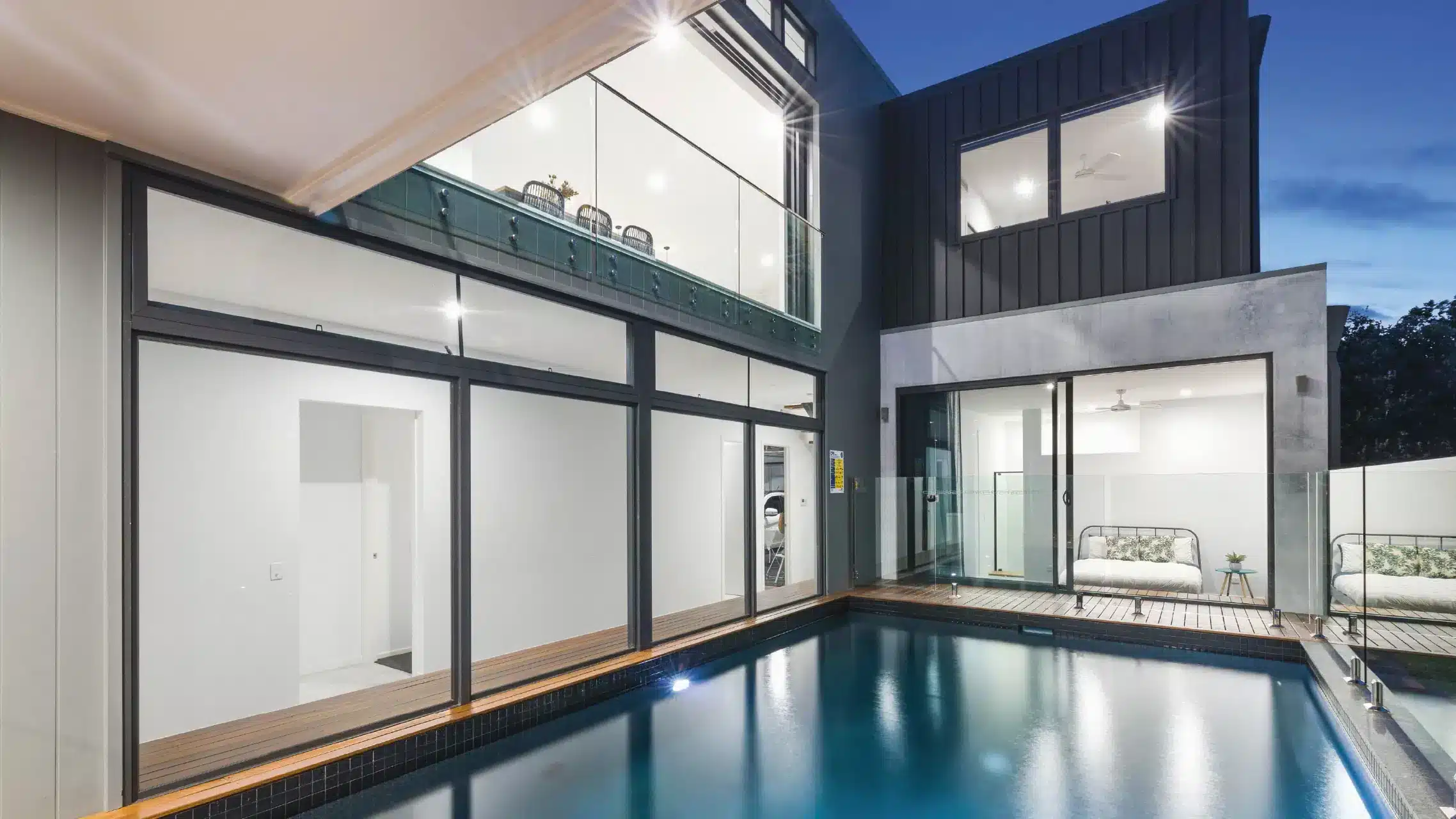 From the guest bedroom and main living area, two-panel Sliding Doors open directly to the pool and surrounding entertaining decks, creating a seamless transition from relaxed indoors to vibrant outdoor living.