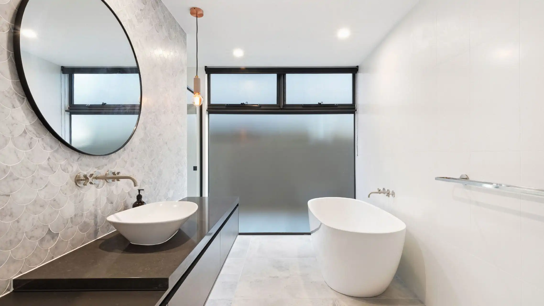 In the master ensuite, glazed Louvre Windows open to the soothing sounds of the ocean, the scent of salt air, and peaceful bushland views โ creating a true escape. In the guest ensuite, full-height glazed windows ensure both privacy and natural light, while thoughtfully placed Awning Windows welcome in the gentle coastal breeze.