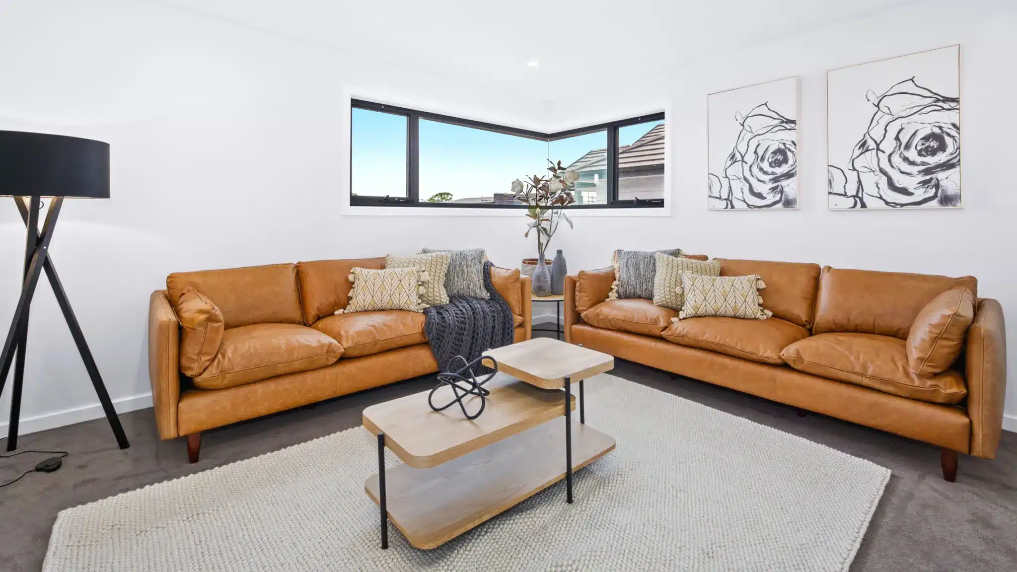 This beautiful display home by NSW builder, Tullipan Homes, is a stunning example of luxurious contemporary architectural design. Its asymmetrical structure—created by the rooms being set at different levels—reflects the home’s modernity and lets it stand above traditional designs. Throughout the property, quality black aluminium windows and glass doors add to the home’s industrial feel while creating light-filled, open spaces that breathe life into this unique space.