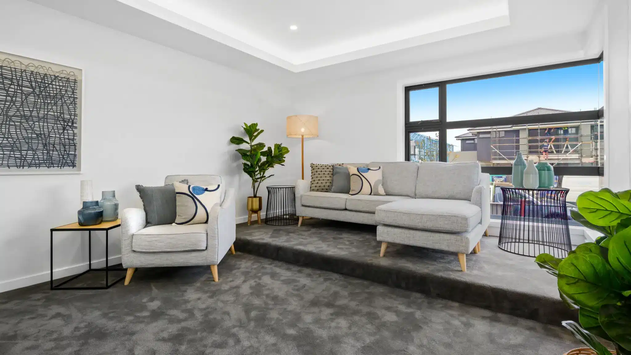Inside, a neutral colour palette of grey, black, white, and timber enables the stunning architectural design to take centre stage while creating cohesion with the external design. The open-plan dining area leads through large bi-fold doors to the paved outdoor entertaining area, which boasts a large covered alfresco and rear yard. These doors can be left open during the warmer months to achieve a seamless indoor/outdoor living experience.