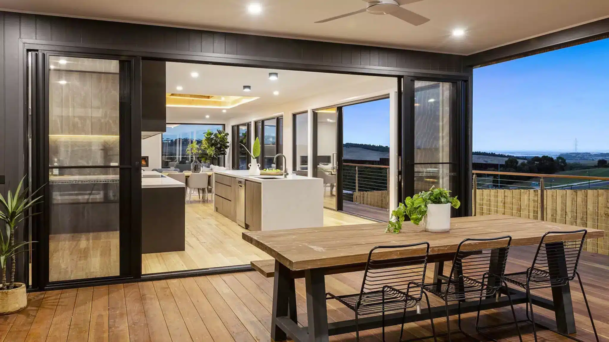 Featuring Simply Doors & Window’s Stacking Glass Sliding Doors, the lines of indoor and outdoor living are seamlessly blended to join the living area and kitchen areas to the open-air terrace.