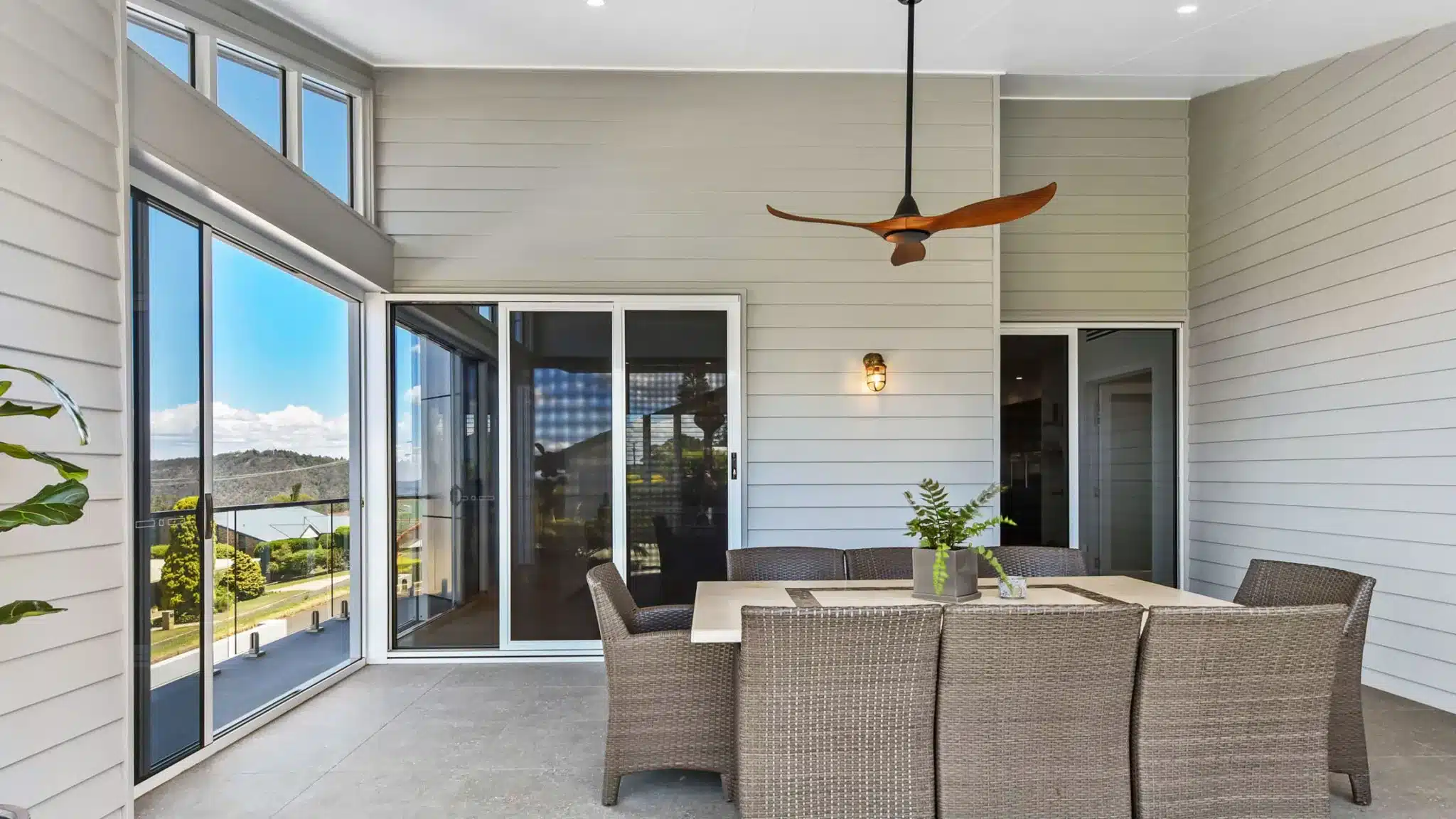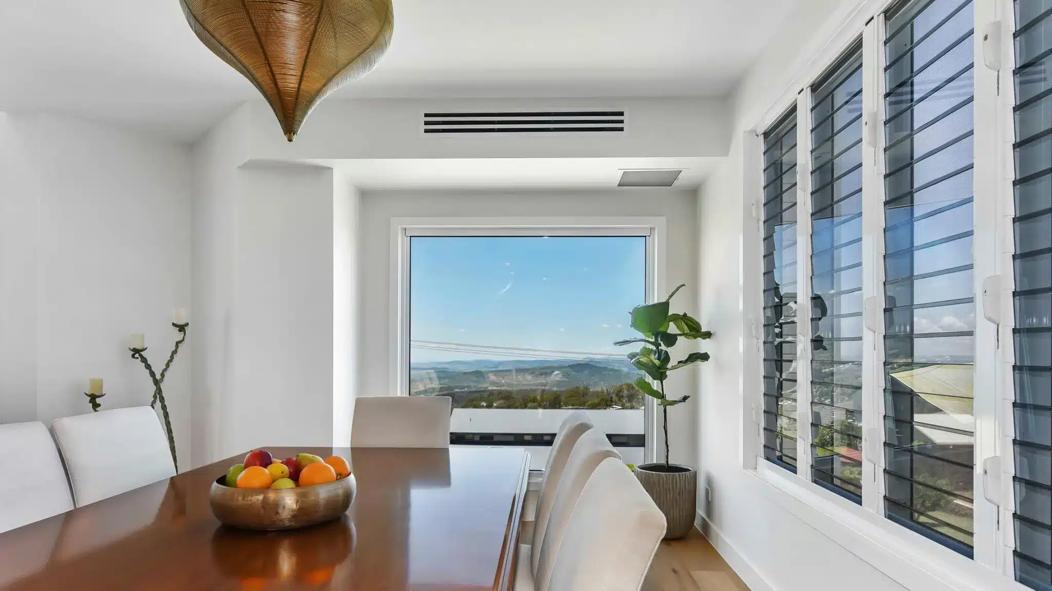 Louvre and Sliding windows also feature throughout the home to introduce teeming sunlight whilst also directing fresh air into the space through adjustable sliders and horizontal blades. Glass balustrades on the balcony ensure that no beautiful views are lost from the living area, allowing guests to fully immerse themselves in their surroundings.