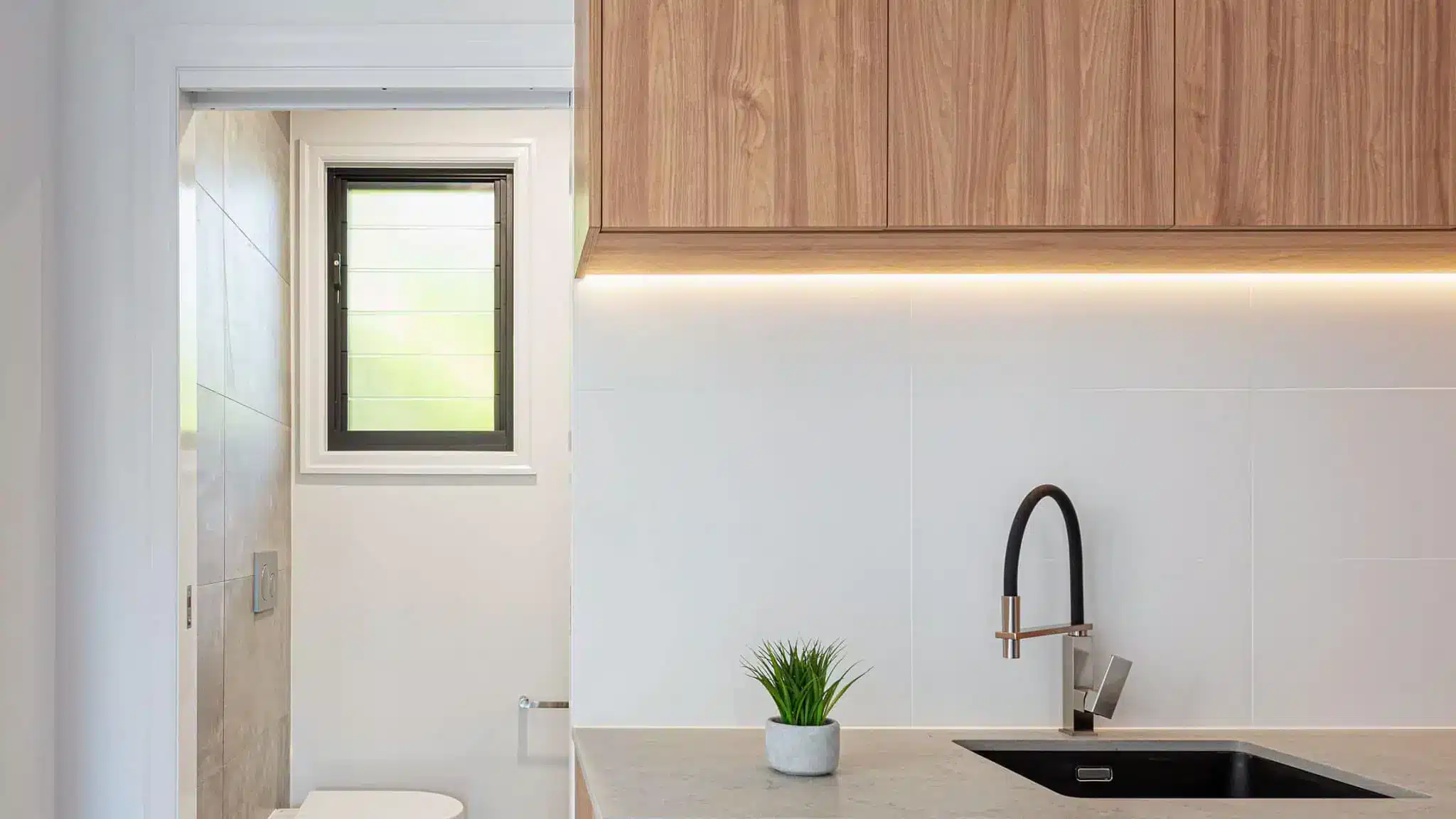 Strategically placed Louvre Windows further enable controlled breezes to flow through the home via adjustable horizontal blades. As a result, the homeowners can reap the benefits of a reduced reliance on air-conditioning and consistent comfort despite the season.